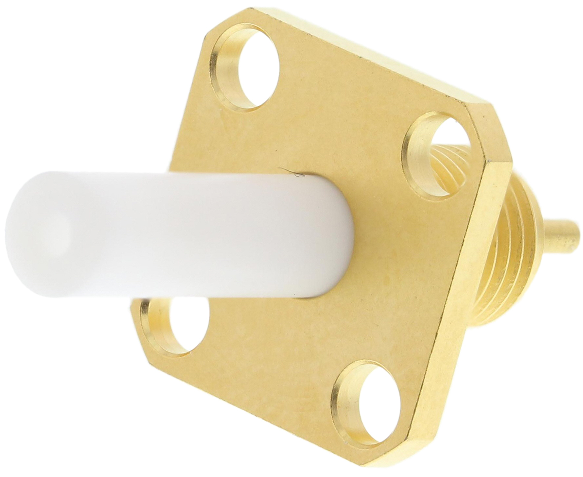 This is Straight 50Ω Panel Mount SMA Connector manufactured by Radiall. The manufacturer part number is R125413000W. The body is gold plated for adorable look and strength. The product is available in flange mount configuration. In addition, female is the available "Gender" of the product. It has straight body orientation. This coaxial connector is a type of sma connector. It has a bulkhead no . The high-quality gold over nickel is used as contact plating material. It allows solder termination method. Furthermore, the product has 0 → 18ghz operating frequency range. It has an impedance value of 50ω. It has a maximum operating temperature of 165°c. Whereas, the minimum operating temperature of the product is -65°c. The product is made from sturdy beryllium copper materials.