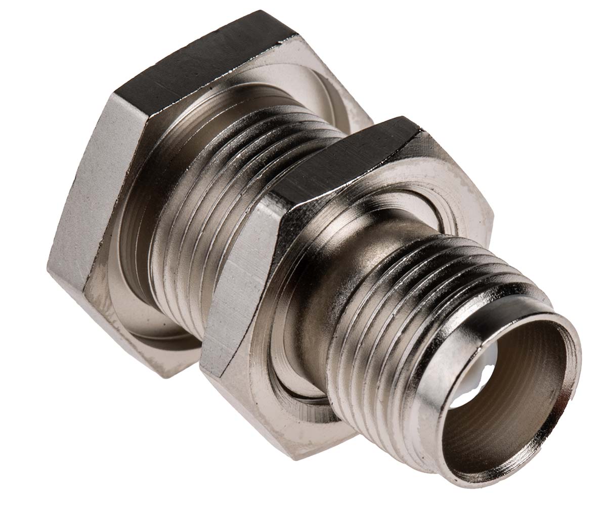 This is Straight 33 mm 50Ω Panel Mount TNC Connector Crimp Termination RG174/U RG188 A/U RG316/U manufactured by RS Pro. The manufacturer part number is 488-9324. The body is nickel plated for adorable look and strength. The product is available in panel mount configuration. In addition, female is the available "Gender" of the product. It has straight body orientation. It is a typical rg174/u, rg188 a/u, rg316/u cable. This coaxial connector is a type of tnc connector. The high-quality gold over nickel over copper is used as contact plating material. It allows crimp termination method. Furthermore, the product has 0 to 11ghz operating frequency range. It has an impedance value of 50ω. The product is made from sturdy beryllium copper materials. It has a maximum operating temperature of +165°c. Whereas, the minimum operating temperature of the product is -65°c. The product is available in 33 mm size.