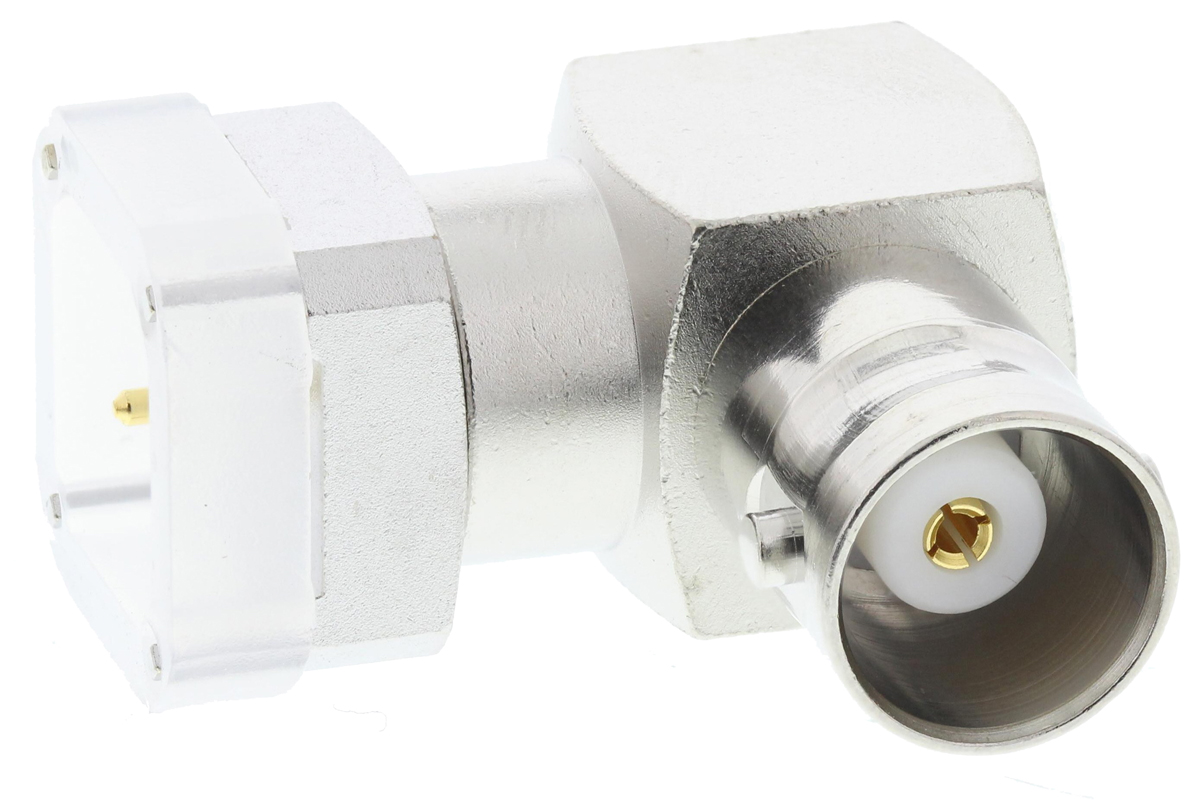 This is Right Angle 50Ω Through Hole BNC Connector jack Solder Termination Nickel manufactured by Telegartner. The manufacturer part number is J01001A1948. The body is nickel plated for adorable look and strength. The product is available in pcb mount configuration. In addition, female is the available "Gender" of the product. It has right angle body orientation. This coaxial connector is a type of bnc connector. It has a bulkhead no . The high-quality gold is used as contact plating material. It allows through hole termination method. Furthermore, the product has 0 to 4ghz operating frequency range. It has an impedance value of 50ω. It has a maximum operating temperature of +165°c. Whereas, the minimum operating temperature of the product is -65°c. The product is made from sturdy beryllium copper materials.