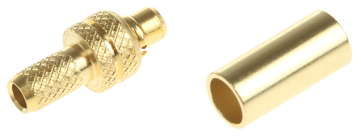 This is 50Ω Straight Cable Mount MMCX Connector Plug Crimp Termination 0 → 6GHz RG174/U manufactured by RS Pro. The manufacturer part number is 655-9952. The body is gold plated for adorable look and strength. The product is available in cable mount configuration. In addition, male is the available "Gender" of the product. It has straight body orientation. It is a typical rg174/u cable. This coaxial connector is a type of mmcx connector. The high-quality gold is used as contact plating material. It allows crimp termination method. Furthermore, the product has 0 to 6ghz operating frequency range. It has an impedance value of 50ω. The product is made from sturdy brass materials. The product is available in micro miniature size.