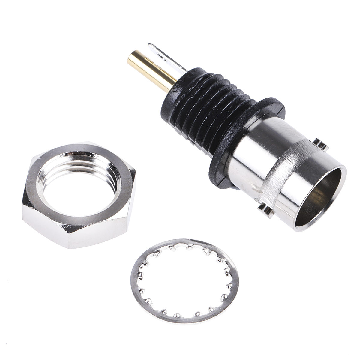 This is Straight 50Ω Panel Mount Bulkhead Fitting BNC Connector jack Nickel Solder Termination manufactured by Telegartner. The manufacturer part number is J01001D0043. The body is nickel plated for adorable look and strength. The product is available in panel mount configuration. In addition, female is the available "Gender" of the product. It has straight body orientation. This coaxial connector is a type of bnc connector. It has a bulkhead yes . The high-quality gold is used as contact plating material. It allows solder termination method. Furthermore, the product has 0 to 4ghz operating frequency range. It has an impedance value of 50ω. It has a maximum operating temperature of +165°c. Whereas, the minimum operating temperature of the product is -65°c. The product is made from sturdy beryllium copper materials.