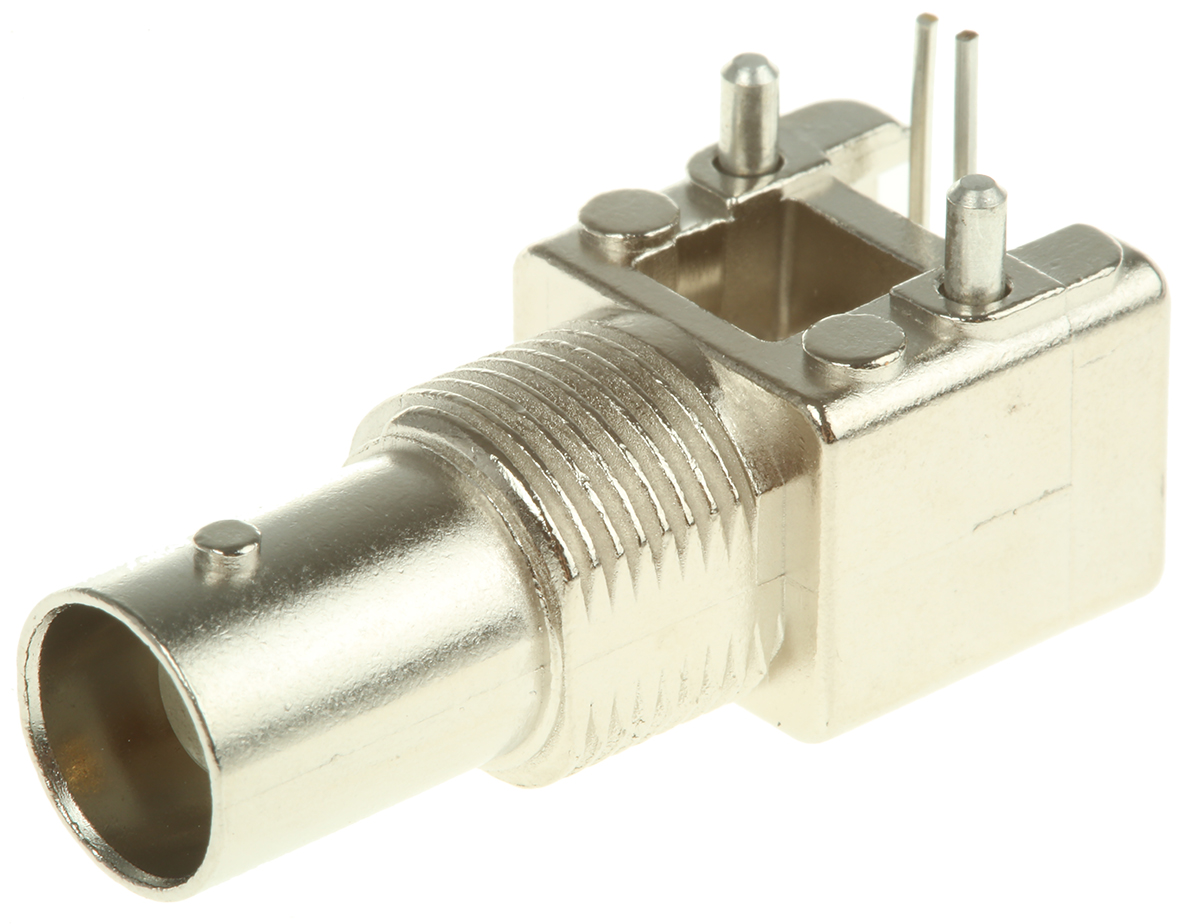 This is Right Angle 50Ω PCB Mount BNC Connector jack Solder Termination Nickel manufactured by TE Connectivity. The manufacturer part number is 5413879-1. While providing normal polarity. The body is nickel plated for adorable look and strength. The product is available in pcb mount configuration. In addition, female is the available "Gender" of the product. It has right angle body orientation. It allows through hole termination method. This coaxial connector is a type of bnc connector. It has a bulkhead yes . The high-quality gold is used as contact plating material. Furthermore, the product has 0 to 4ghz operating frequency range. It has an impedance value of 50ω. The product is made from sturdy phosphor bronze materials.