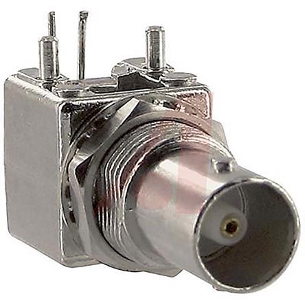 This is Right Angle 75Ω PCB Mount Bulkhead Fitting BNC Connector jack Solder Termination RG59 Nickel manufactured by Cinch Connectors. The manufacturer part number is CPBNCPC010. While providing normal polarity. The body is nickel plated for adorable look and strength. The product is available in pcb mount configuration. In addition, female is the available "Gender" of the product. It has right angle body orientation. It is a typical rg59 cable. This coaxial connector is a type of bnc connector. It has a bulkhead yes . The high-quality gold is used as contact plating material. It allows through hole termination method. Furthermore, the product has 0 to 2ghz operating frequency range. It has an impedance value of 75ω. The product is made from sturdy beryllium copper, brass materials.