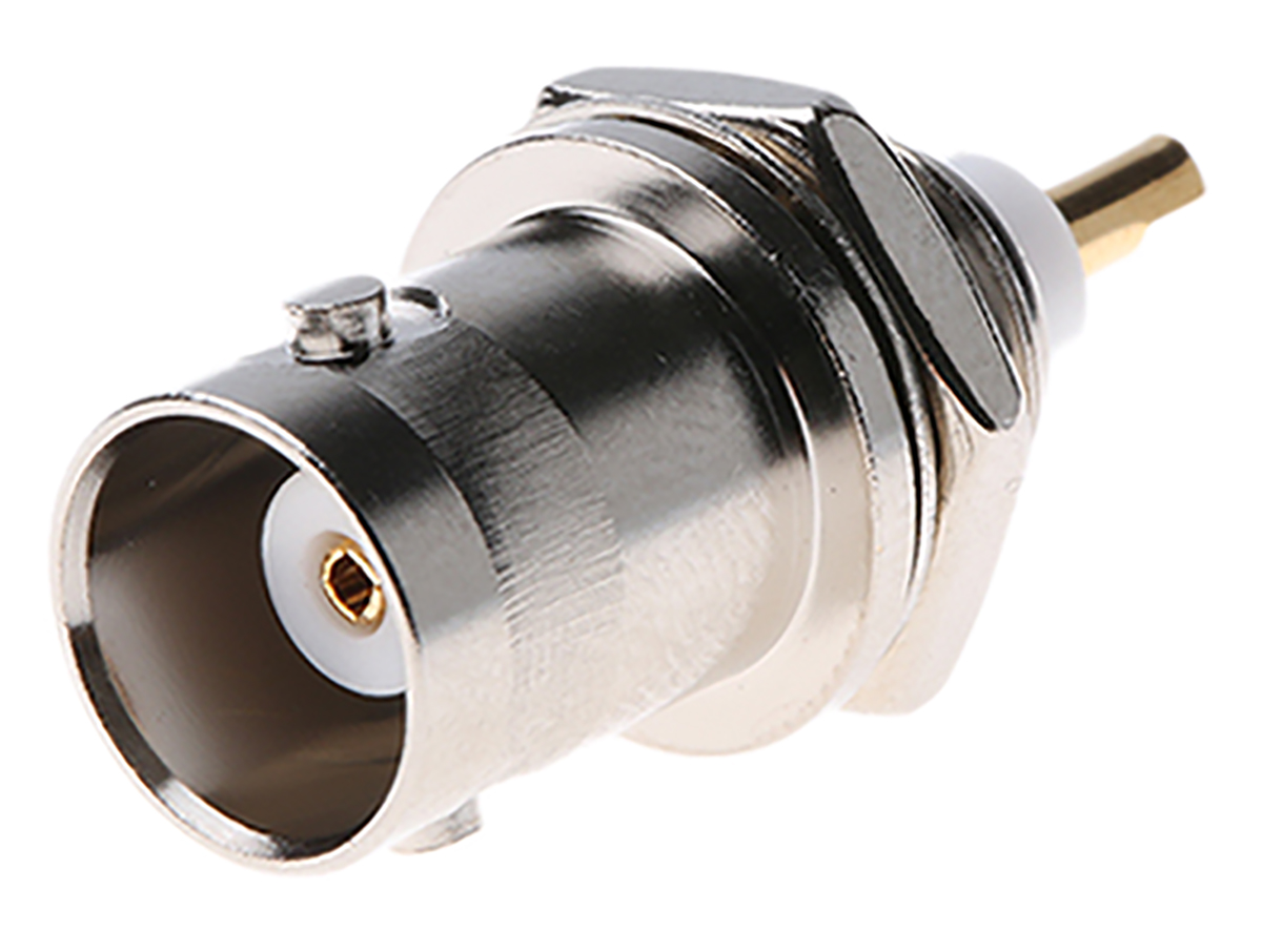 This is Straight 50Ω Panel Mount Bulkhead Fitting BNC Connector jack Nickel Solder Termination manufactured by Radiall. The manufacturer part number is R141563161. While providing normal polarity. The body is nickel plated for adorable look and strength. The product is available in panel mount configuration. In addition, female is the available "Gender" of the product. It has straight body orientation. This coaxial connector is a type of bnc connector. It has a bulkhead yes . The high-quality silver is used as contact plating material. It allows solder termination method. Furthermore, the product has 0 to 1.5ghz operating frequency range. It has an impedance value of 50ω. The product is made from sturdy brass materials.