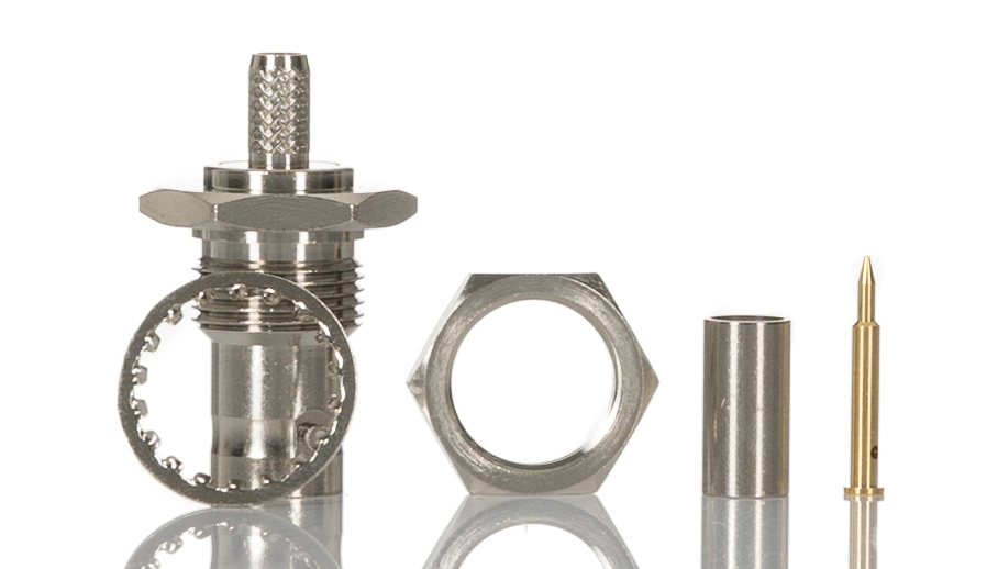 This is Straight 50Ω Panel Mount Bulkhead Fitting BNC Connector jack Nickel Crimp Termination Reverse Polarity manufactured by RS Pro. The manufacturer part number is 546-2784. While providing reverse polarity. It is a type of bayonet mating. The product is available in panel mount configuration. In addition, female is the available "Gender" of the product. It has straight body orientation. It is a typical bt 2003, ch/net, mini rg59, psf 1/2, psf 1/3, rg174, rg178, rg179, rg58, rg59, scart, t/enet cable. This coaxial connector is a type of bnc connector. It has a bulkhead yes . The high-quality gold is used as contact plating material. It allows crimp termination method. Furthermore, the product has 4ghz operating frequency range. It has an impedance value of 50ω. The product is made from sturdy brass materials. It has a maximum operating temperature of +85°c. Whereas, the minimum operating temperature of the product is -65°c. The body is nickel plated for adorable look and strength.