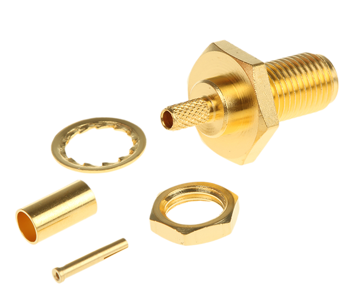 This is Straight 50Ω Panel Mount SMA Bulkhead Crimp Termination RG174/U RG188 A/U RG316/U manufactured by Telegartner. The manufacturer part number is J01151A0001. The body is gold plated for adorable look and strength. The product is available in panel mount configuration. In addition, female is the available "Gender" of the product. It has straight body orientation. It is a typical rg174/u, rg188 a/u, rg316/u cable. This coaxial connector is a type of sma connector. It has a bulkhead yes . The high-quality copper nickel gold alloy is used as contact plating material. It allows crimp termination method. Furthermore, the product has 0 to 18ghz operating frequency range. It has an impedance value of 50ω. It has a maximum operating temperature of +165°c. Whereas, the minimum operating temperature of the product is -65°c. The product is made from sturdy beryllium copper materials.