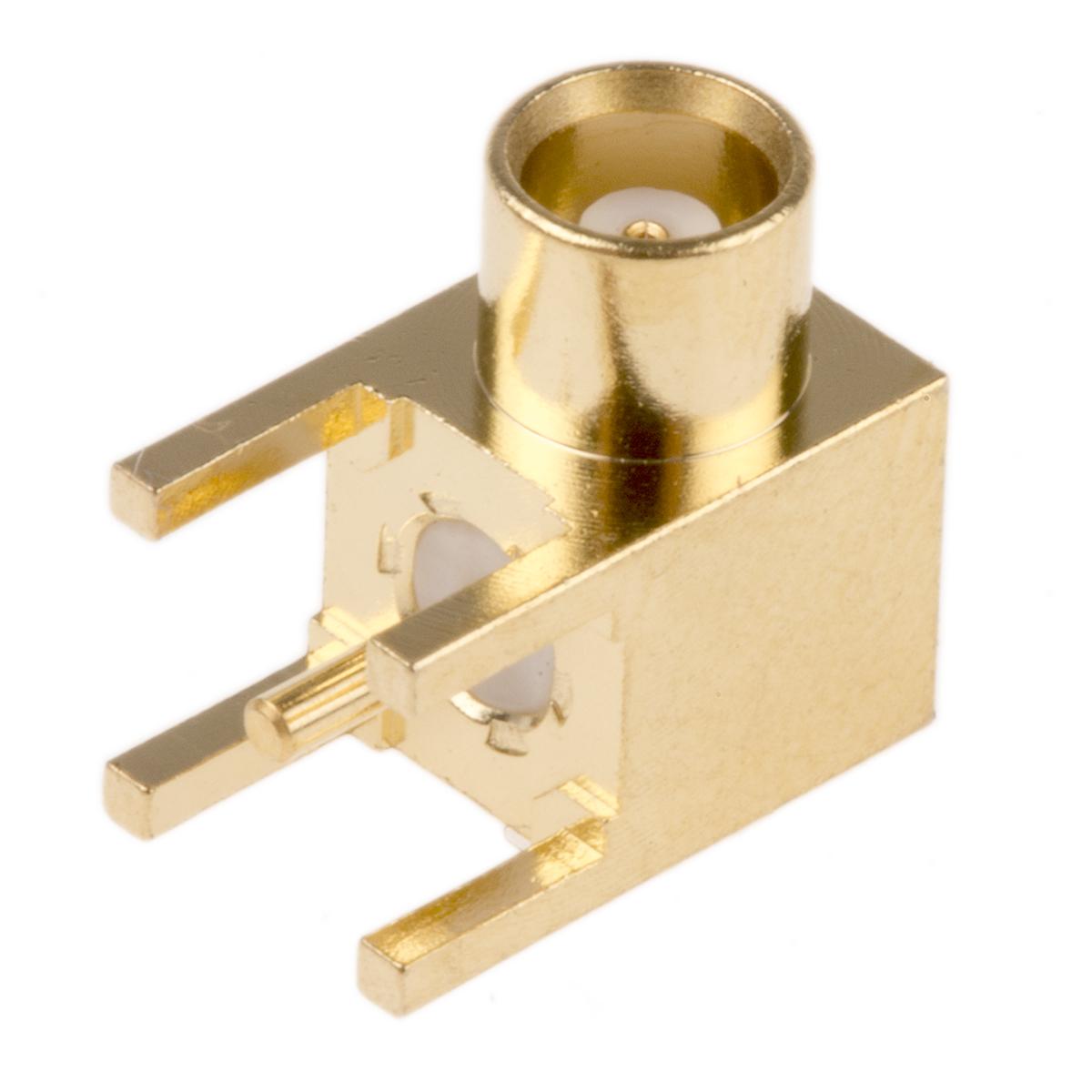 This is Right Angle PCB Mount MCX Connector jack 50Ω Impedance Solder Termination 0 → 6GHz manufactured by RS Pro. The manufacturer part number is 921-0234. The body is gold plated for adorable look and strength. The product is available in pcb mount configuration. In addition, female is the available "Gender" of the product. It has right angle body orientation. It allows solder termination method. This coaxial connector is a type of mcx connector. The high-quality gold is used as contact plating material. The product is made from sturdy beryllium copper materials. Furthermore, the product has 0 to 6ghz operating frequency range. It has an impedance value of 50ω. The product is available in micro miniature size. It is a type of push-pull mating.