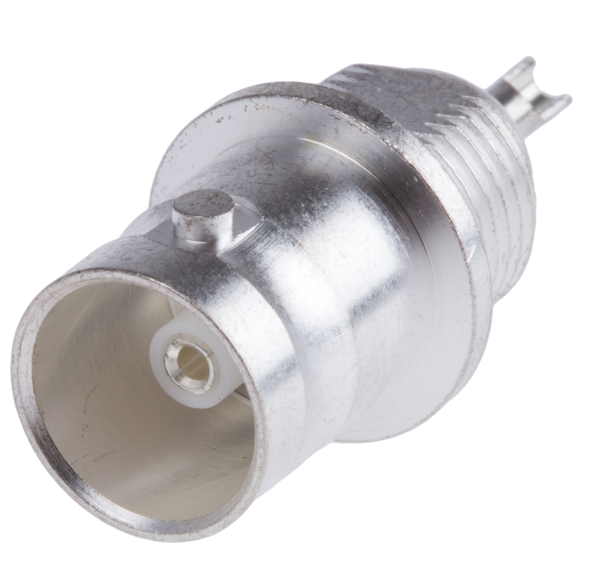 This is Straight 75Ω Panel Mount BNC Connector jack Silver Solder Termination manufactured by TE Connectivity. The manufacturer part number is 1-1337504-0. The body is silver plated for adorable look and strength. The product is available in panel mount configuration. In addition, female is the available "Gender" of the product. It has straight body orientation. Whereas, the minimum operating temperature of the product is -65°c. This coaxial connector is a type of bnc connector. It has a bulkhead yes . The high-quality silver is used as contact plating material. It allows solder termination method. Furthermore, the product has 0 to 2ghz operating frequency range. It has an impedance value of 75ω. It has a maximum operating temperature of +165°c. The product is made from sturdy brass materials.