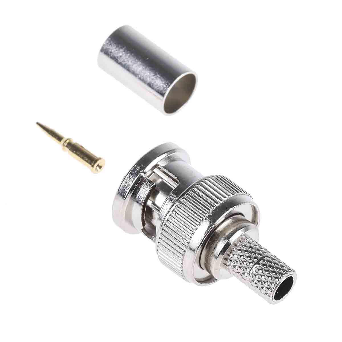 This is Straight 75Ω Cable Mount BNC Connector Plug Nickel Crimp Termination manufactured by TE Connectivity. The manufacturer part number is 5-1634502-2. The body is nickel plated for adorable look and strength. The product is available in cable mount configuration. In addition, male is the available "Gender" of the product. It has straight body orientation. It is a typical rg140/u, rg210/u, rg59 b/u, rg62 a/u cable. This coaxial connector is a type of bnc connector. It has a bulkhead no . The high-quality gold is used as contact plating material. It allows crimp termination method. Furthermore, the product has 0 to 2ghz operating frequency range. It has an impedance value of 75ω. It has a maximum operating temperature of +85°c. Whereas, the minimum operating temperature of the product is -55°c. The product is made from sturdy brass materials.