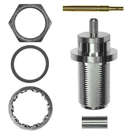 This is 50Ω Straight Cable Mount Bulkhead Fitting N Connector jack Crimp Termination 0 → 11GHz manufactured by Cinch Connectors. The manufacturer part number is 138-4308-407. It is a type of quick connect mating. The product is available in cable mount configuration. In addition, female is the available "Gender" of the product. It has straight body orientation. It is a typical rg142, rg223, rg400, rg55 cable. This coaxial connector is a type of n connector. It has a bulkhead yes . The high-quality gold over nickel over copper is used as contact plating material. It allows crimp termination method. Furthermore, the product has 0 to 11ghz operating frequency range. It has an impedance value of 50ω. The product is made from sturdy beryllium copper materials. The body is tri-alloy (copper/tin/zinc) plated for adorable look and strength.
