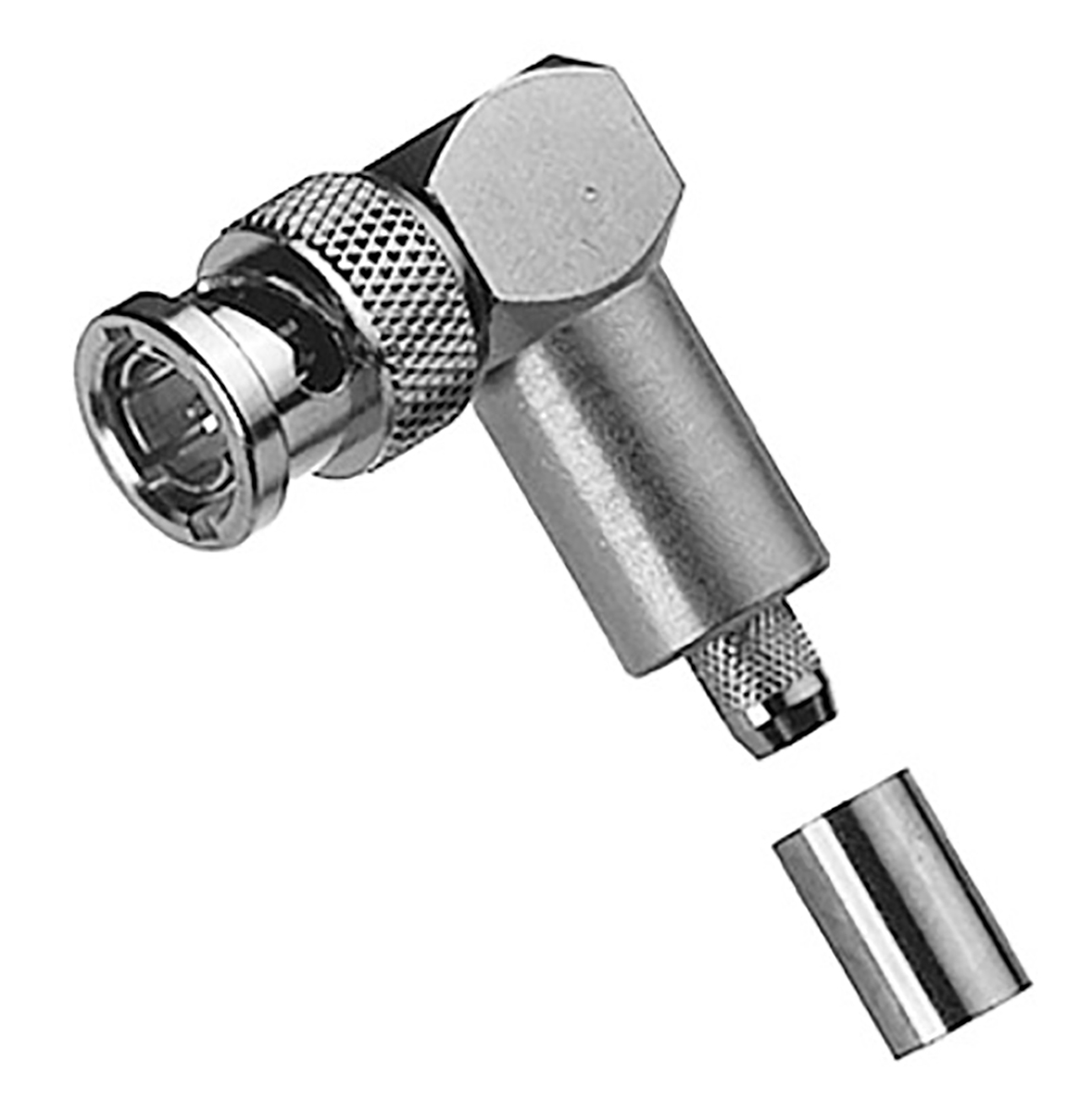 This is Right Angle 50Ω Cable Mount BNC Connector Plug Crimp Termination RG58 C/U Nickel manufactured by Telegartner. The manufacturer part number is J01000A0024. The body is nickel plated for adorable look and strength. The product is available in cable mount configuration. In addition, male is the available "Gender" of the product. It has right angle body orientation. It is a typical rg58 c/u cable. This coaxial connector is a type of bnc connector. It has a bulkhead no . The high-quality gold is used as contact plating material. It allows crimp termination method. Furthermore, the product has 0 to 4ghz operating frequency range. It has an impedance value of 50ω. It has a maximum operating temperature of +165°c. Whereas, the minimum operating temperature of the product is -65°c. The product is made from sturdy beryllium copper materials.