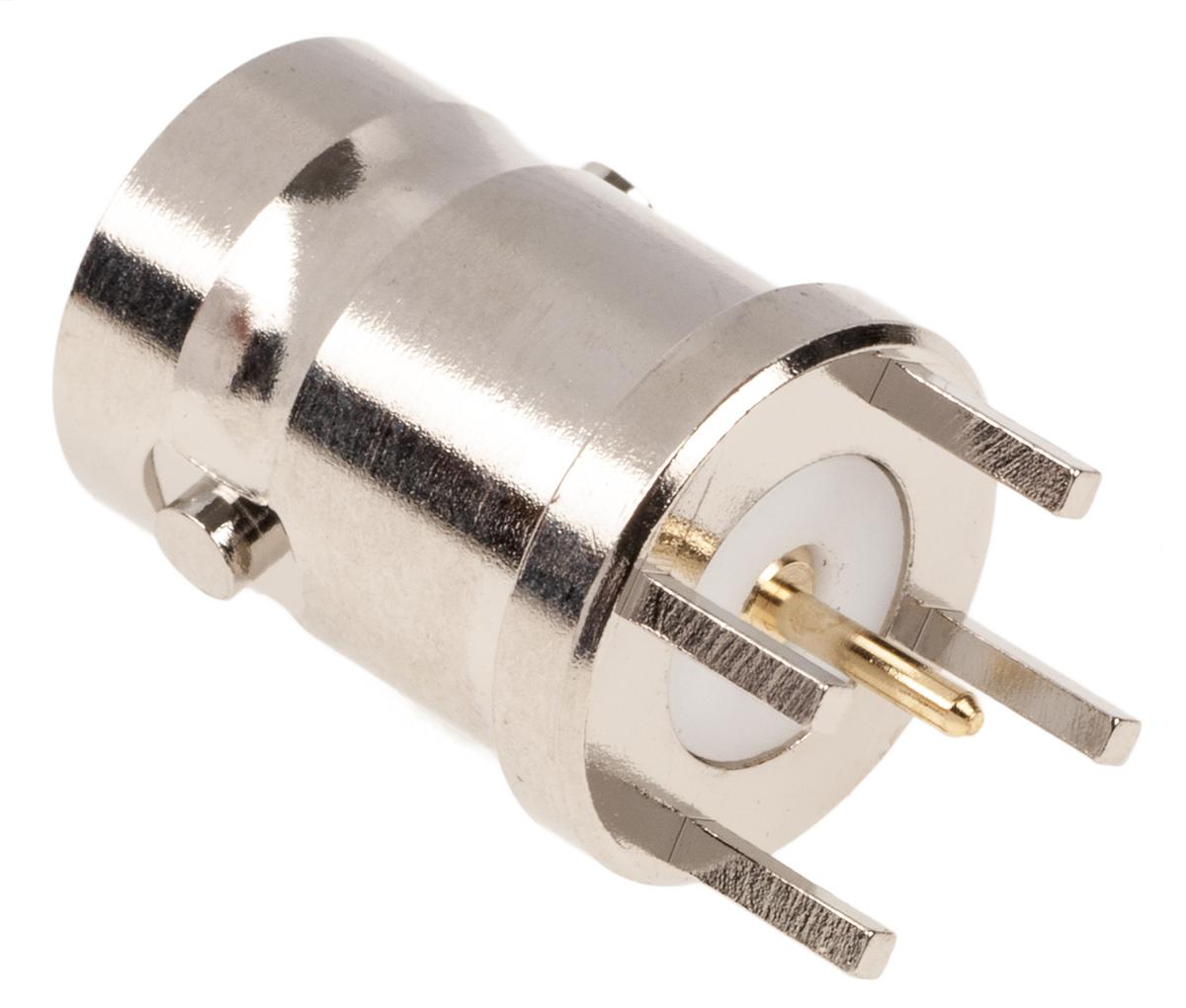 This is Greenpar Series Straight 50Ω Through Hole BNC Connector jack Nickel Solder Termination manufactured by TE Connectivity. The manufacturer part number is 1-1337535-0. The body is nickel plated for adorable look and strength. The product is available in pcb mount configuration. In addition, female is the available "Gender" of the product. It has straight body orientation. It allows through hole termination method. This coaxial connector is a type of bnc connector. It has a bulkhead no . The high-quality gold is used as contact plating material. The product greenpar, is a highly preferred choice for users. Furthermore, the product has 0 to 4ghz operating frequency range. It has an impedance value of 50ω. It has a maximum operating temperature of +165°c. Whereas, the minimum operating temperature of the product is -65°c. The product is made from sturdy brass materials.