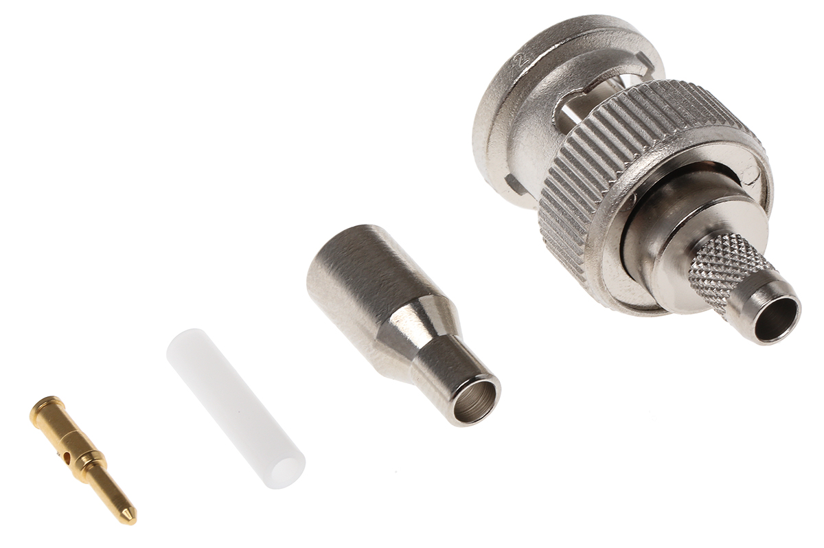 This is Straight 75Ω Cable Mount BNC Connector Plug Crimp Termination RG179 B/U Nickel manufactured by Telegartner. The manufacturer part number is J01002A0036. The body is nickel plated for adorable look and strength. The product is available in cable mount configuration. In addition, male is the available "Gender" of the product. It has straight body orientation. It is a typical rg179 b/u cable. This coaxial connector is a type of bnc connector. It has a bulkhead no . The high-quality copper nickel gold alloy is used as contact plating material. It allows crimp termination method. Furthermore, the product has 0 to 4ghz operating frequency range. It has an impedance value of 75ω. It has a maximum operating temperature of +75°c. Whereas, the minimum operating temperature of the product is -40°c. The product is made from sturdy beryllium copper materials.