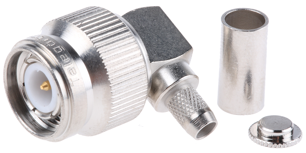 This is Right Angle 50Ω Cable Mount TNC Connector Crimp Termination RG141 A/U RG58 C/U manufactured by Telegartner. The manufacturer part number is J01010A0005. The body is nickel plated for adorable look and strength. The product is available in cable mount configuration. In addition, male is the available "Gender" of the product. It has right angle body orientation. It is a typical rg141 a/u, rg58 c/u cable. This coaxial connector is a type of tnc connector. The high-quality gold over nickel over copper is used as contact plating material. It allows crimp termination method. Furthermore, the product has 0 to 11ghz operating frequency range. It has an impedance value of 50ω. It has a maximum operating temperature of +165°c. Whereas, the minimum operating temperature of the product is -65°c. The product is made from sturdy beryllium copper materials.