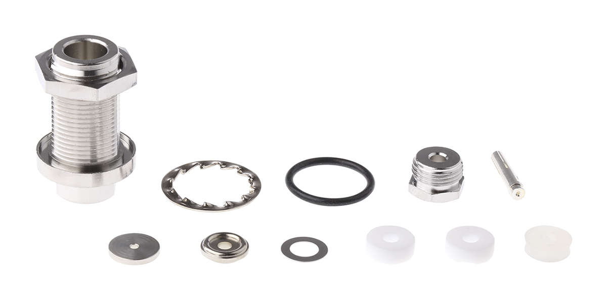 This is 50Ω Straight Panel Mount N Type Connector jack 0 → 11GHz RG174/U RG188 A/U RG316/U manufactured by Telegartner. The manufacturer part number is J01021H1003. The body is copper nickel alloy, white bronze plated for adorable look and strength. The product is available in panel mount configuration. In addition, female is the available "Gender" of the product. It has straight body orientation. It is a typical rg174/u, rg188 a/u, rg316/u cable. This coaxial connector is a type of n connector. The high-quality silver is used as contact plating material. Furthermore, the product has 0 to 11ghz operating frequency range. It has an impedance value of 50ω. It has a maximum operating temperature of +165°c. Whereas, the minimum operating temperature of the product is -65°c. The product is made from sturdy beryllium copper materials.