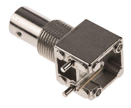 This is Right Angle 50Ω Through Hole Bulkhead Fitting BNC Connector jack Nickel Solder Termination manufactured by TE Connectivity. The manufacturer part number is 1-1337494-0. The body is nickel plated for adorable look and strength. The product is available in pcb mount configuration. In addition, female is the available "Gender" of the product. It has right angle body orientation. This coaxial connector is a type of bnc connector. It has a bulkhead yes . The high-quality gold over nickel over copper is used as contact plating material. It allows through hole termination method. Furthermore, the product has 0 to 4ghz operating frequency range. It has an impedance value of 50ω. It has a maximum operating temperature of +85°c. Whereas, the minimum operating temperature of the product is -55°c. The product is made from sturdy brass materials.
