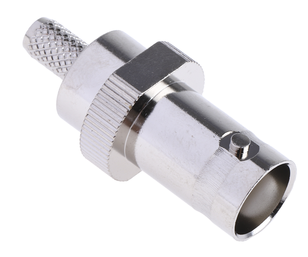 This is Straight 50Ω Cable Mount BNC Connector jack Nickel Crimp Termination RG58 manufactured by RS Pro. The manufacturer part number is 546-3844. While providing normal polarity. The body is nickel plated for adorable look and strength. The product is available in cable mount configuration. In addition, female is the available "Gender" of the product. It has straight body orientation. It is a typical rg58 cable. This coaxial connector is a type of bnc connector. It has a bulkhead no . The high-quality gold is used as contact plating material. It allows crimp termination method. Furthermore, the product has 4ghz operating frequency range. It has an impedance value of 50ω. The product is made from sturdy brass materials.