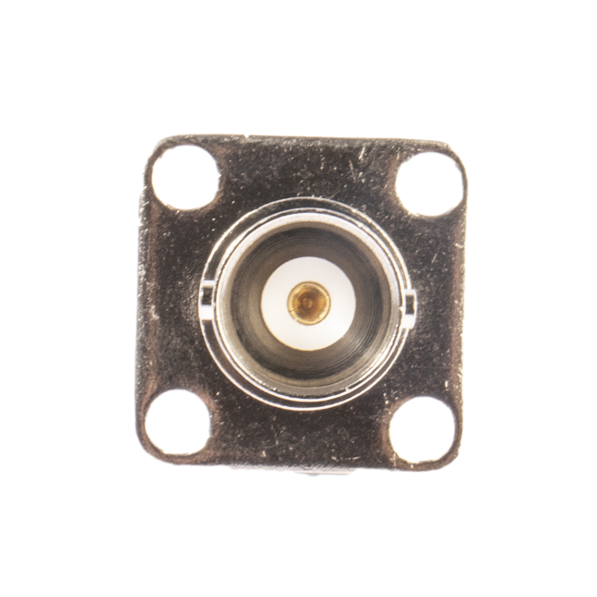 This is Straight 50Ω Panel Mount BNC Connector jack Nickel Solder Termination manufactured by RS Pro. The manufacturer part number is 546-4005. While providing normal polarity. The body is nickel plated for adorable look and strength. The product is available in flange mount configuration. In addition, female is the available "Gender" of the product. It has straight body orientation. This coaxial connector is a type of bnc connector. It has a bulkhead yes . The high-quality gold is used as contact plating material. It allows solder termination method. Furthermore, the product has 4ghz operating frequency range. It has an impedance value of 50ω. The product is made from sturdy brass materials.