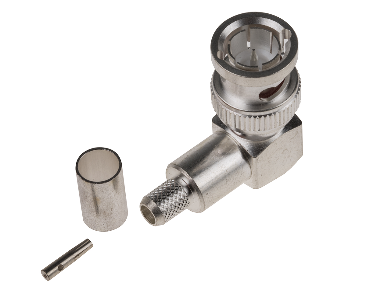 This is Right Angle 75Ω Cable Mount BNC Connector Plug Crimp Termination URM 70 manufactured by RS Pro. The manufacturer part number is 546-4178. While providing normal polarity. The product is available in cable mount configuration. In addition, male is the available "Gender" of the product. It has right angle body orientation. It is a typical urm 70 cable. This coaxial connector is a type of bnc connector. It has a bulkhead no . It allows crimp termination method. It has an impedance value of 75ω. The product is made from sturdy copper materials.