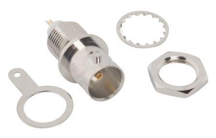 This is BNC Series Straight 75Ω Cable Mount Bulkhead Fitting BNC Connector jack Nickel Solder Termination manufactured by Amphenol. The manufacturer part number is 112427. While providing normal polarity. The body is nickel plated for adorable look and strength. The product is available in panel mount configuration. In addition, female is the available "Gender" of the product. It has straight body orientation. It allows solder termination method. This coaxial connector is a type of bnc connector. It has a bulkhead yes . The high-quality gold is used as contact plating material. The product bnc, is a highly preferred choice for users. Furthermore, the product has 4ghz operating frequency range. It has an impedance value of 75ω. The product is made from sturdy phosphor bronze materials. It has a maximum operating temperature of +85°c. Whereas, the minimum operating temperature of the product is -40°c. The product is available in standard size.