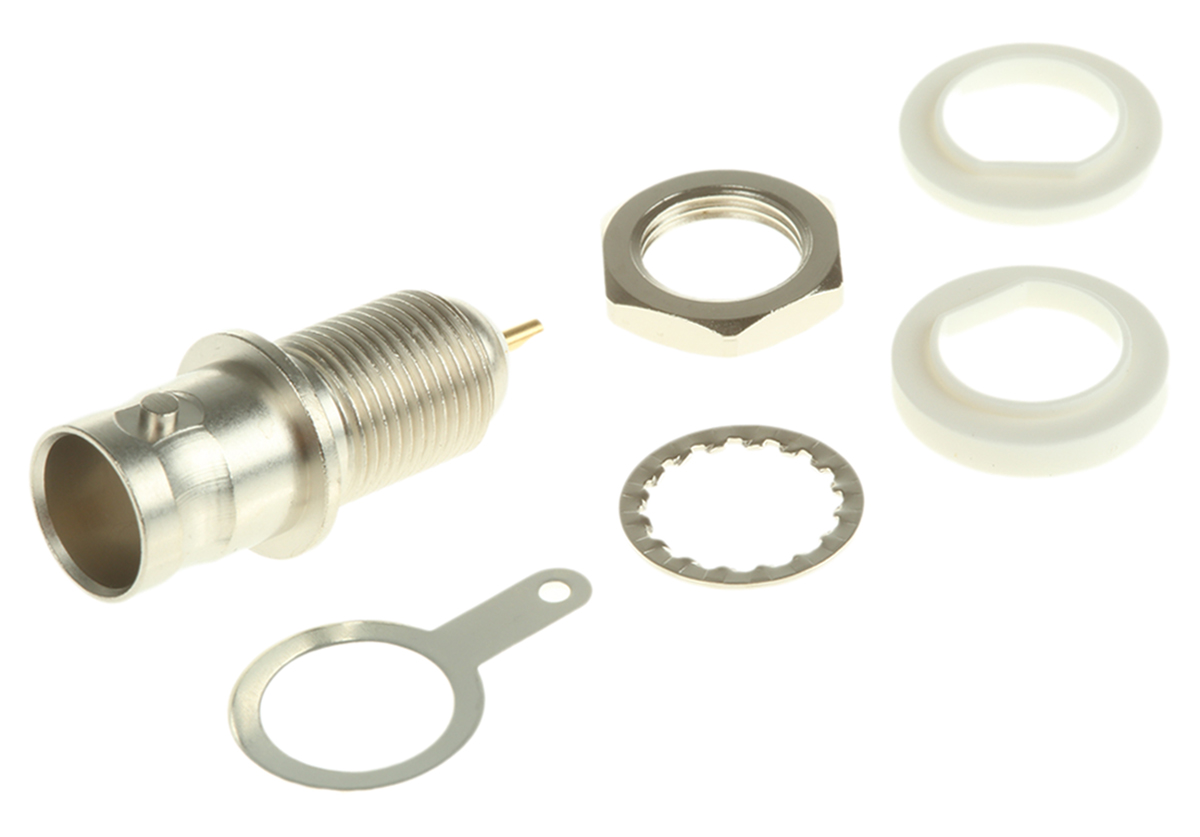 This is Straight 75Ω Panel Mount BNC Connector jack Nickel Solder Termination manufactured by Telegartner. The manufacturer part number is J01003B1286. The body is nickel plated for adorable look and strength. The product is available in panel mount configuration. In addition, female is the available "Gender" of the product. It has straight body orientation. This coaxial connector is a type of bnc connector. It has a bulkhead yes . The high-quality gold is used as contact plating material. It allows solder termination method. Furthermore, the product has 0 to 4ghz operating frequency range. It has an impedance value of 75ω. It has a maximum operating temperature of +165°c. Whereas, the minimum operating temperature of the product is -65°c. The product is made from sturdy beryllium copper materials.
