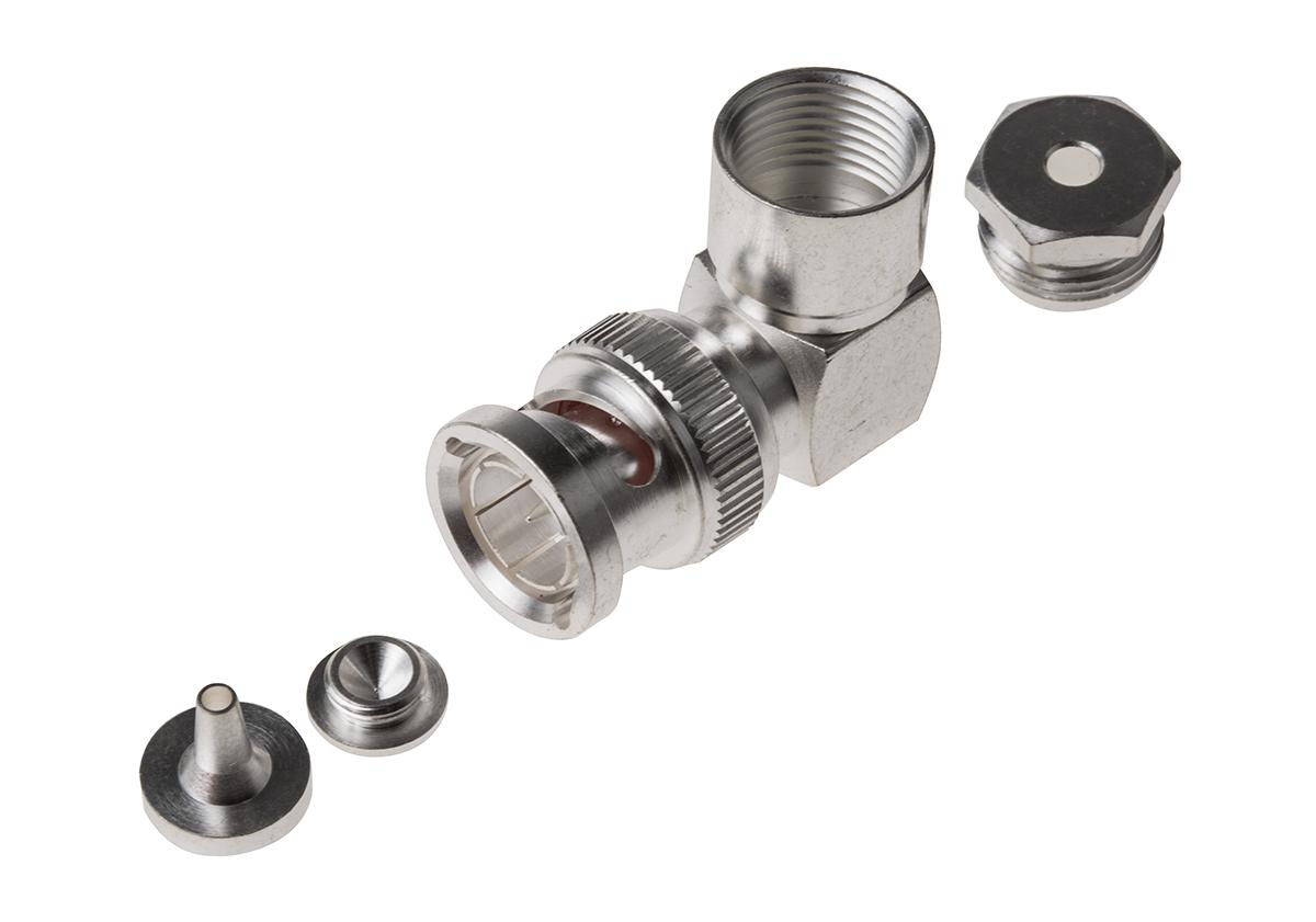 This is Right Angle 75Ω Cable Mount BNC Connector Plug Silver Clamp Termination RG179E manufactured by RS Pro. The manufacturer part number is 546-4392. While providing normal polarity. The body is silver plated for adorable look and strength. The product is available in cable mount configuration. In addition, male is the available "Gender" of the product. It has right angle body orientation. It is a typical rg179e cable. This coaxial connector is a type of bnc connector. It has a bulkhead no . The high-quality silver is used as contact plating material. It allows clamp termination method. Furthermore, the product has 1ghz operating frequency range. It has an impedance value of 75ω. The product is made from sturdy copper materials.