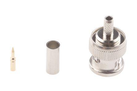 This is Straight 75Ω Cable Mount BNC Connector Plug Silver Crimp Termination RG59 manufactured by RS Pro. The manufacturer part number is 546-4645. While providing normal polarity. The body is silver plated for adorable look and strength. The product is available in cable mount configuration. In addition, male is the available "Gender" of the product. It has straight body orientation. It is a typical rg59 cable. It allows crimp termination method. It has an impedance value of 75ω. The product is made from sturdy copper materials.