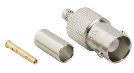 This is BNC Series Straight 50Ω Cable Mount BNC Connector jack Nickel Crimp Termination manufactured by Amphenol. The manufacturer part number is 000-36800-RFX. While providing normal polarity. The body is nickel plated for adorable look and strength. The product is available in cable mount configuration. In addition, female is the available "Gender" of the product. It has straight body orientation. It is a typical belden 9907, belden b7806a, lmr-195, rg141, rg303, rg58, rg58a, rg58b, rg58c cable. It allows crimp termination method. This coaxial connector is a type of bnc connector. It has a bulkhead no . The high-quality gold is used as contact plating material. The product bnc, is a highly preferred choice for users. Furthermore, the product has 4ghz operating frequency range. It has an impedance value of 50ω. The product is made from sturdy phosphor bronze materials. It has a maximum operating temperature of +165°c. Whereas, the minimum operating temperature of the product is -65°c. The product is available in standard size.