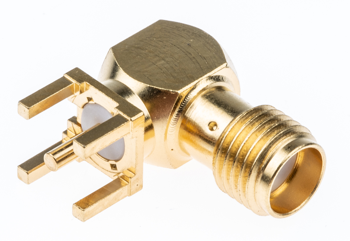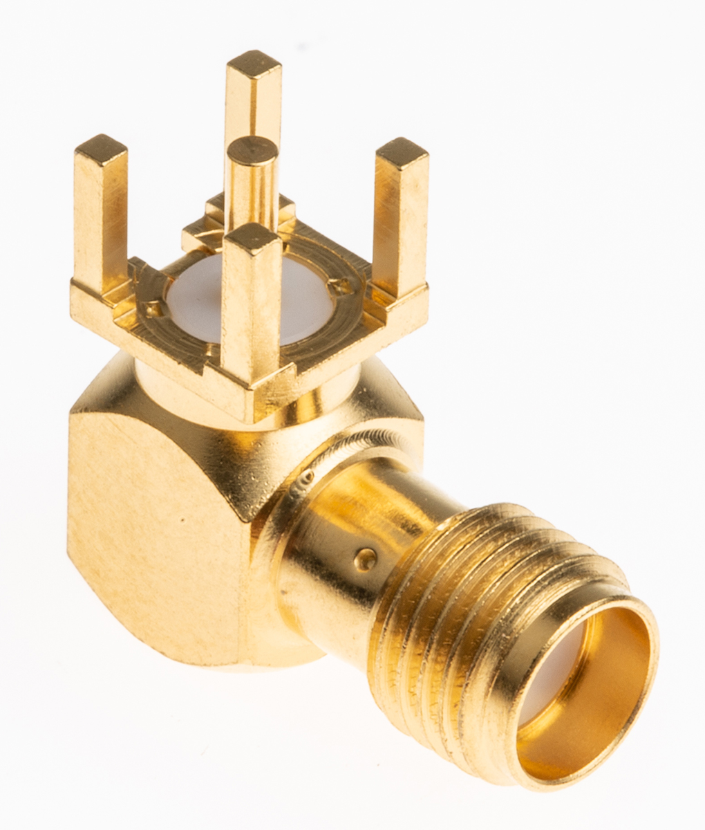 This is Right Angle 50Ω Through Hole SMA Connector Solder Termination Coaxial manufactured by Radiall. The manufacturer part number is R125680000W. The body is gold plated for adorable look and strength. The product is available in pcb mount configuration. In addition, female is the available "Gender" of the product. It has right angle body orientation. It allows solder termination method. This coaxial connector is a type of sma connector. It has a bulkhead no . The high-quality gold over nickel is used as contact plating material. Furthermore, the product has 0 to 18ghz operating frequency range. It has an impedance value of 50ω. The product is made from sturdy beryllium copper materials. It has a maximum operating temperature of +165°c. Whereas, the minimum operating temperature of the product is -65°c. The product is available in standard size.