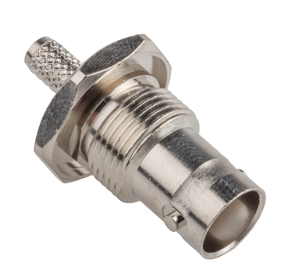 This is Straight 50Ω Panel Mount Bulkhead Fitting BNC Connector jack Nickel Crimp Termination RG58 manufactured by RS Pro. The manufacturer part number is 546-3743. While providing normal polarity. The body is nickel plated for adorable look and strength. The product is available in panel mount configuration. In addition, female is the available "Gender" of the product. It has straight body orientation. It is a typical rg58 cable. This coaxial connector is a type of bnc connector. It has a bulkhead yes . The high-quality gold is used as contact plating material. It allows crimp termination method. Furthermore, the product has 4ghz operating frequency range. It has an impedance value of 50ω. The product is made from sturdy brass materials.