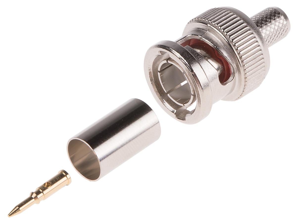 This is Straight 75Ω Cable Mount BNC Connector Plug Nickel Crimp Termination PSF 1/3 manufactured by RS Pro. The manufacturer part number is 546-3658. While providing normal polarity. The body is nickel plated for adorable look and strength. The product is available in cable mount configuration. In addition, male is the available "Gender" of the product. It has straight body orientation. It is a typical psf 1/3 cable. This coaxial connector is a type of bnc connector. It has a bulkhead no . The high-quality gold is used as contact plating material. It allows crimp termination method. Furthermore, the product has 1ghz operating frequency range. It has an impedance value of 75ω. The product is made from sturdy brass materials.