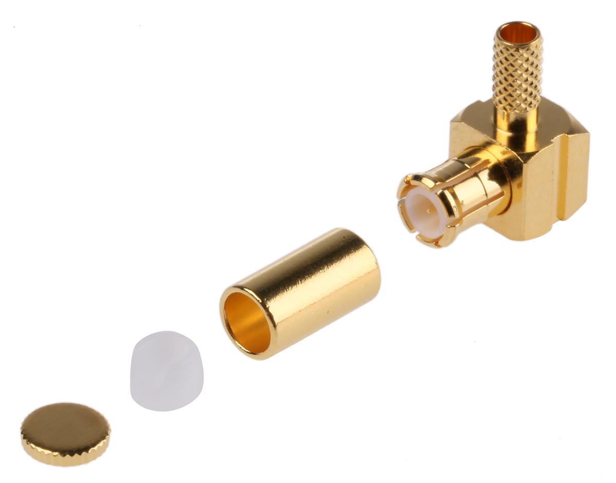 This is Amphenol 50Ω Right Angle Cable Mount MCX Connector Plug manufactured by Amphenol RF. The manufacturer part number is MCX1112A1-3GT30G-5-50. The body is gold plated for adorable look and strength. The product is available in cable mount configuration. In addition, male is the available "Gender" of the product. It has right angle body orientation. It is a typical rg174/u, rg188 a/u, rg316/u cable. This coaxial connector is a type of mcx connector. The high-quality gold is used as contact plating material. It allows crimp termination method. Furthermore, the product has 0 to 6ghz operating frequency range. It has an impedance value of 50ω. The product is made from sturdy brass materials.
