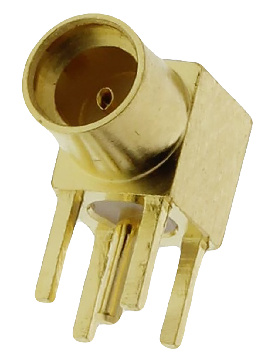 This is Amphenol 50Ω Right Angle Through Hole MMCX Connector jack manufactured by Amphenol RF. The manufacturer part number is MMCX6252N1-3GT30G-50. The body is gold plated for adorable look and strength. The product is available in through hole configuration. In addition, female is the available "Gender" of the product. It has right angle body orientation. This coaxial connector is a type of mmcx connector. The high-quality gold is used as contact plating material. It allows solder termination method. Furthermore, the product has 0 to 6ghz operating frequency range. It has an impedance value of 50ω. The product is made from sturdy beryllium copper materials.