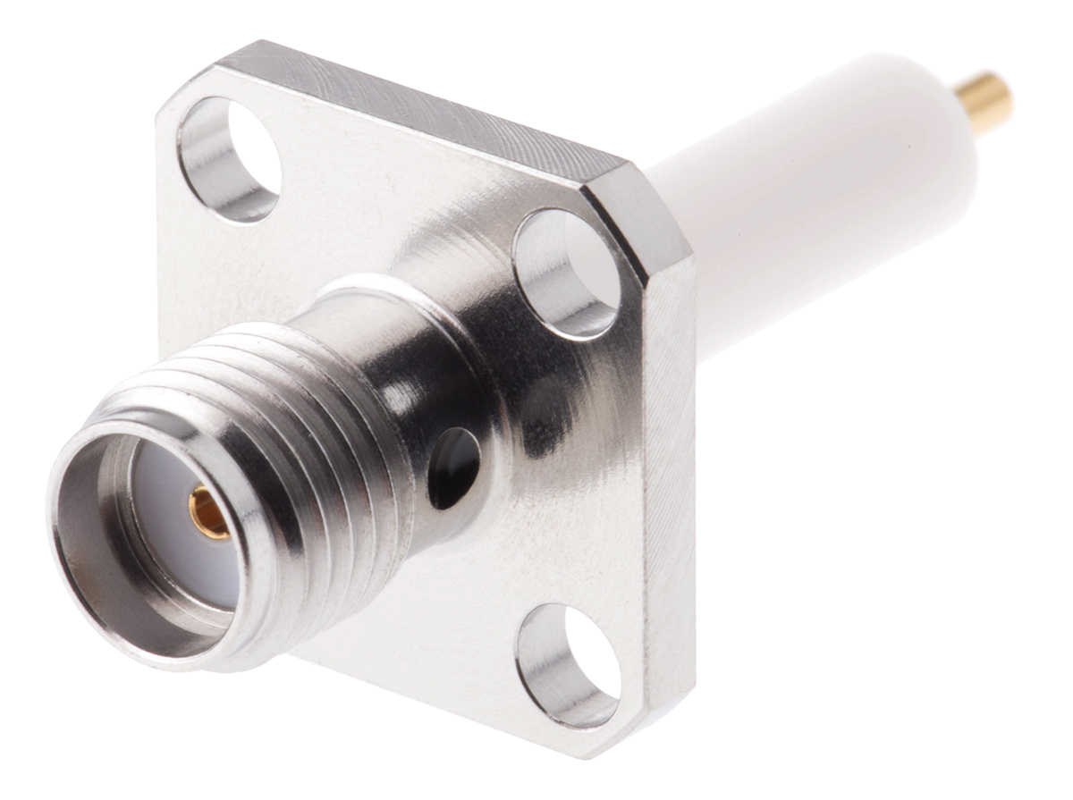 This is Amphenol 50Ω Straight Flange Mount SMA Connector jack manufactured by Amphenol RF. The manufacturer part number is SF2950-6061. The body is passivated stainless steel plated for adorable look and strength. The product is available in flange mount configuration. In addition, female is the available "Gender" of the product. It has straight body orientation. This coaxial connector is a type of sma connector. It has a bulkhead no . The high-quality gold over nickel is used as contact plating material. It allows solder termination method. Furthermore, the product has 0 to 18ghz operating frequency range. It has an impedance value of 50ω. The product is made from sturdy beryllium copper materials.