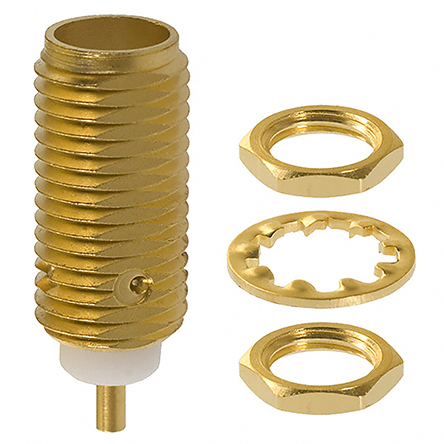 The Cinch 142‑0701‑411 is a high-performance 50 Ω bulkhead jack, expertly engineered for demanding RF and microwave applications. Crafted with robust gold-plated brass (body plating: gold over nickel) and a PTFE (Teflon) dielectric, this straight panel-mount SMA female connector ensures exceptional signal integrity up to 18 GHz.