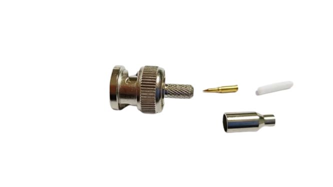 This is Plug Cable Mount BNC Connector 50Ω Crimp Termination Straight Body manufactured by RS PRO. The manufacturer part number is 246-9455. The body is gold plated for adorable look and strength. The product is available in cable mount configuration. In addition, male is the available "Gender" of the product. It has straight body orientation. It is a typical rg174 cable. It allows crimp termination method. This coaxial connector is a type of bnc connector. The high-quality gold is used as contact plating material. The product bnc, is a highly preferred choice for users. Furthermore, the product has 4ghz operating frequency range. It has an impedance value of 50ω. It has a maximum operating temperature of -45°c. Whereas, the minimum operating temperature of the product is +85°c. The product is made from sturdy copper materials.