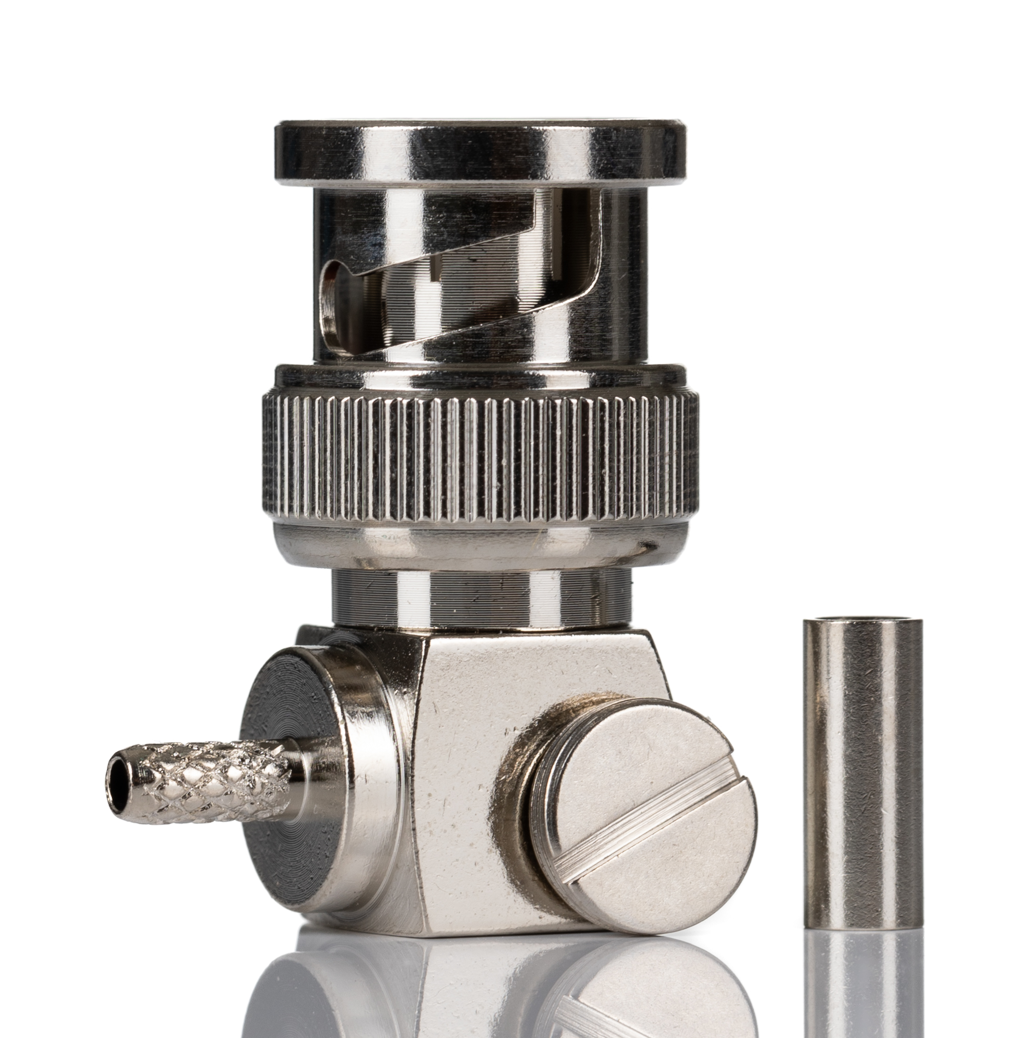 This is Plug Cable Mount BNC Connector 50Ω Crimp Termination Right Angle Body manufactured by RS PRO. The manufacturer part number is 246-9471. The body is nickel plated for adorable look and strength. The product is available in cable mount configuration. In addition, male is the available "Gender" of the product. It has right angle body orientation. It is a typical coaxial cable. It allows crimp termination method. This coaxial connector is a type of bnc connector. The high-quality gold is used as contact plating material. The product bnc, is a highly preferred choice for users. Furthermore, the product has 4ghz operating frequency range. It has an impedance value of 50ω. It has a maximum operating temperature of -45°c. Whereas, the minimum operating temperature of the product is +165°c. The product is made from sturdy copper materials.