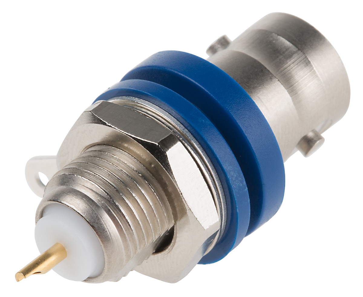 Telegartner 50 Ω and 75 Ω Insulated Straight Bulkhead BNC Solder Jacks From Telegartner, a range of Insulated 50 Ω and 75 Ω BNC straight solder termination bulkhead jacks with colour coded insulating washers. The BNC bulkhead jacks have gold plated beryllium copper contacts and a PTFE insulator. Featuring a simple bayonet coupling mechanism these connectors can be used up to 4 GHz. Requiring only a quarter turn to connect and disconnect this connection method makes the BNC connector one of the most versatile connectors on the market today. Insulated 50 Ω BNC bulkhead jack 112-2369 has black insulating washers Insulated 50 Ω BNC bulkhead jack 112-2375 has white insulating washers Insulated 50 Ω BNC bulkhead jack 112-2381 has red insulating washers Insulated 75 Ω BNC bulkhead jack 124-9111 has black insulation washers Insulated 75 Ω BNC bulkhead jack 124-9127 has white insulation washers Insulated 75 Ω BNC bulkhead jack 124-9133 has red insulation washers Insulated 75 Ω BNC bulkhead jack 193-8338 has green insulation washers Insulated 75 Ω BNC bulkhead jack 112-1158 has blue insulating washers Features and Benefits Bayonet coupling IP54 rated between a mated plug and jack Up to 4 GHz Applications Signal Data Video transmission