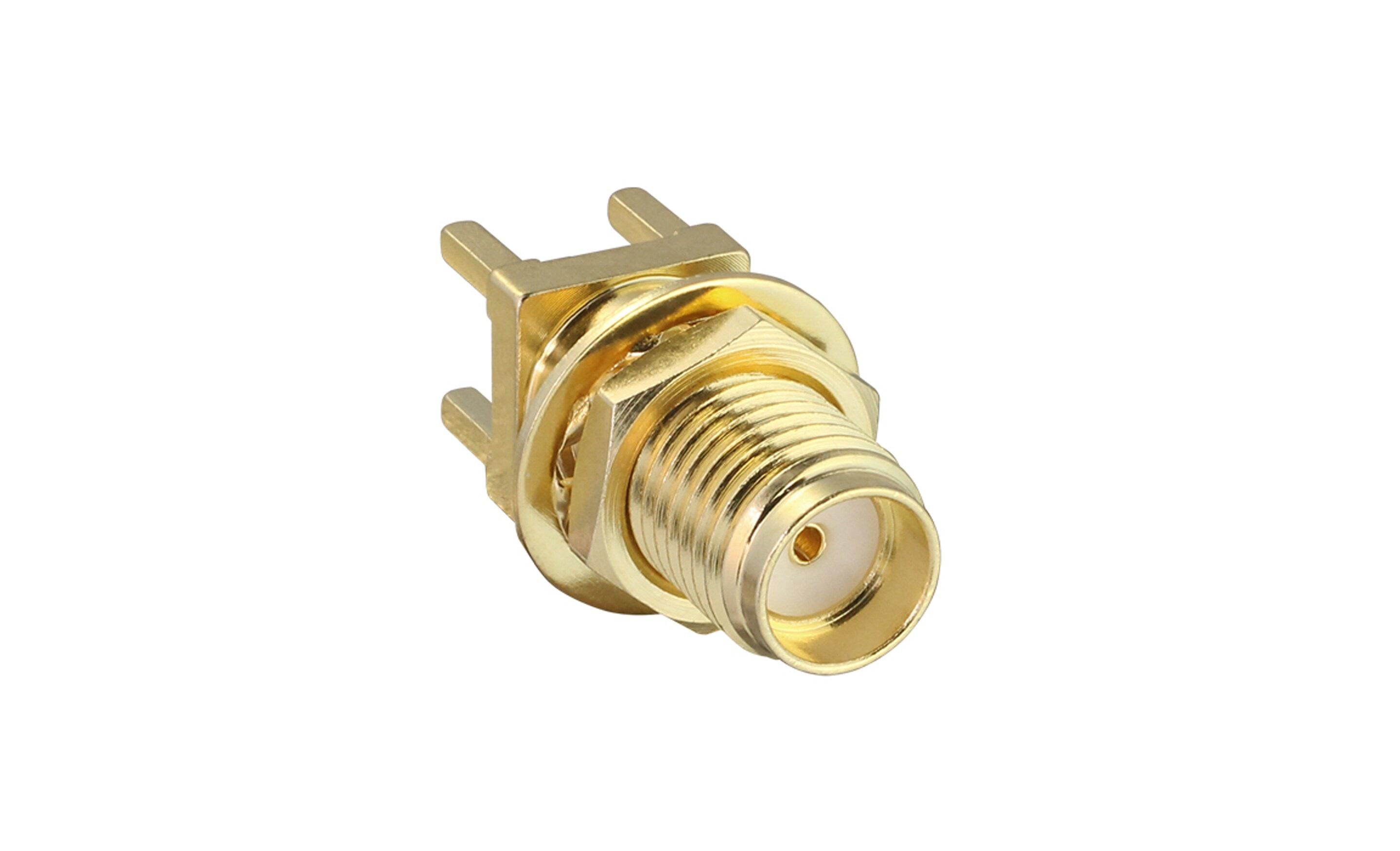 This is jack PCB Mount SMA Connector Through Hole Termination Straight Body manufactured by TE Connectivity. The manufacturer part number is CONSMA008-G. While providing standard polarity. The body is gold plated for adorable look and strength. It is a type of threaded mating. The product is available in pcb mount configuration. In addition, female is the available "Gender" of the product. It has straight body orientation. It is a typical coaxial cable. This coaxial connector is a type of sma connector. It has a bulkhead no . The high-quality gold is used as contact plating material. It allows through hole termination method. Furthermore, the product has 18ghz operating frequency range. The product is made from sturdy beryllium copper materials. It has a maximum operating temperature of +160°c. Whereas, the minimum operating temperature of the product is -65°c. The product is available in 7 x 17.68 x 7 mm size.