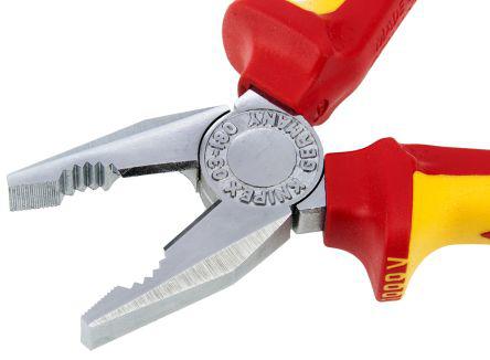 This is 180 mm Combination Pliers Chrome Vanadium Steel manufactured by Knipex. The manufacturer part number is 1585300. Its typical cutting capacity is steel wire: 2.2 mm; spring wire: 2.2 mm . VDE/1000V Approval Options - yes. It has a maximum capacity about 2.2mm . The product is made from highly stable and reliable chrome vanadium steel. 2.2mm Cutting Capacity Spring Wire Included It has the capability of cutting steel wire; spring wire material . It has an overall length of 180 mm. It has an m3.5 cutting capacity screw . A 2.2mm potential of Cutting Capacity Steel Wire