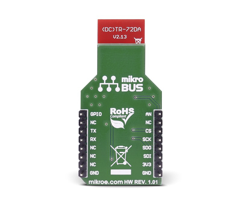 This is iqRF 2 Click - DCTR-72DAT manufactured by MikroElektronika. The manufacturer part number is MIKROE-2587. This product use analogue, gpio, rf transceiver, spi, uart technology. This kit is known as iqrf 2 click, consists of highly versatile and user-desired tools. It performs basic function of transceiver. Additionally, [Utilised IC / Part] is the used part of the product. It is assigned with possible HTSUS value of 8473.30.1180. It is shipped in bulk package . The product is rohs3 compliant. Its typical moisture sensitivity level is 1 (unlimited). Platform Info: mikrobus™ click™. Contents Include: board(s). It has a long 4 weeks standard lead time. It comes in rf configuration. The product is designated with the 5a002a1 code number.