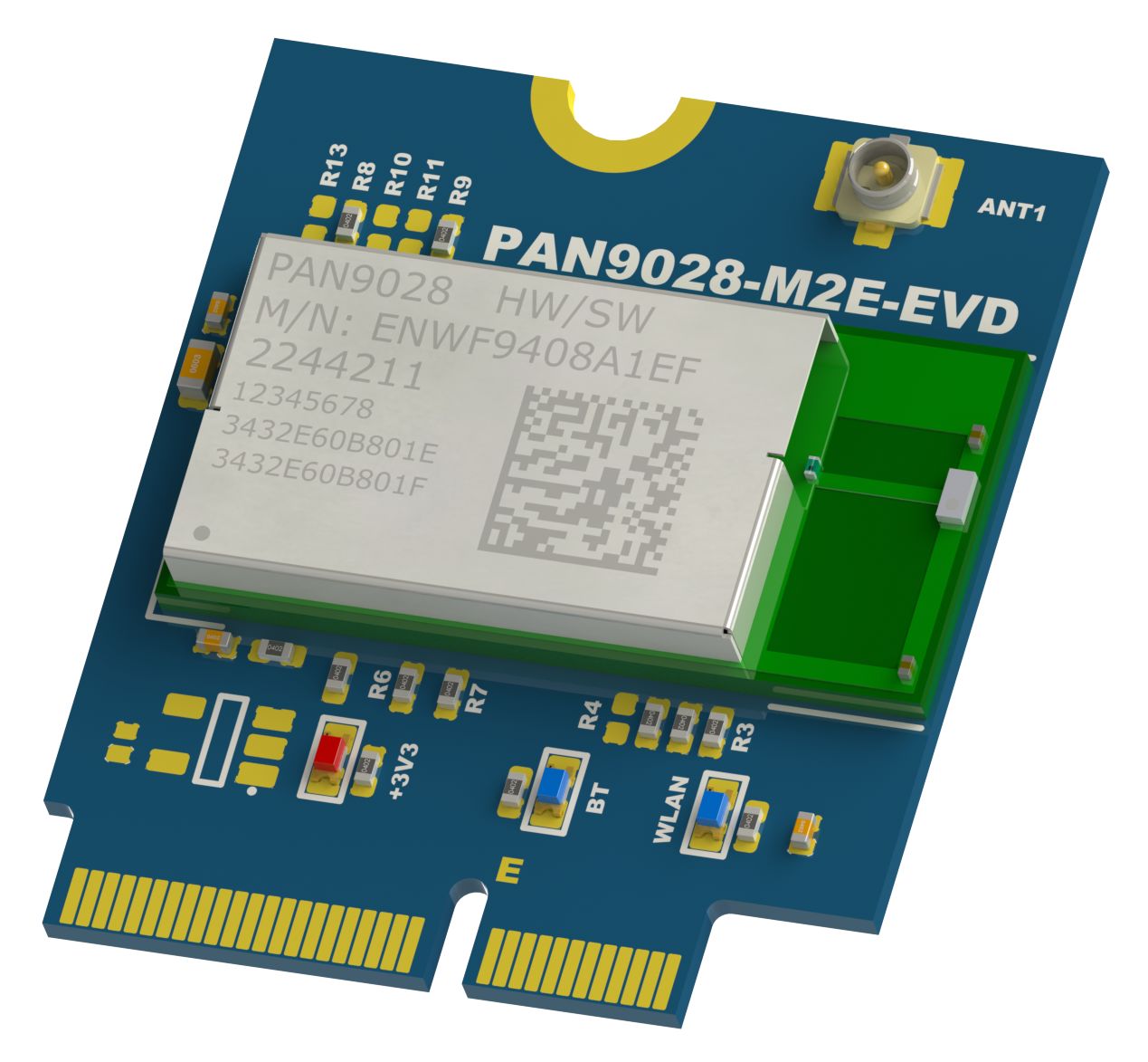 This is PAN9028 Evaluation Kit PAN9028 Bluetooth Wi-Fi Development Kit for Host Processor Evaluation Kits that have manufactured by Panasonic. The manufacturer part number is ENWF9408AMEF. Featured Device pan9028. This kit is known as pan9028 evaluation kit, consists of highly versatile and user-desired tools. It is classified as a/an development kit . In addition, the product is created using bluetooth, wi-fi RF technology . Supplied with 2.4 ghz, 5 ghz of frequency. The kit is classified as development kit. The product is highly suitable for host processor evaluation kits that have a m.2 key e socket. This product use wireless module technology.