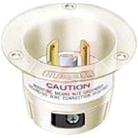 This is Flanged Inlet; 20 A; 125 VAC; L5-20P; White; Brass; Steel-Nickel Plated; Brass manufactured by Hubbell. The manufacturer part number is HBL2315.