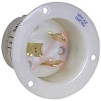 This is Flanged Inlet; 30 A; 250 VAC; L6-30P; White; Brass; Steel-Nickel Plated; Brass manufactured by Hubbell. The manufacturer part number is HBL2625.