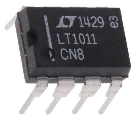 This is Comparator Single +/-15V/30V PDIP8 manufactured by Linear Technology. The manufacturer part number is LT1011CN8#PBF. While ±15v is the typical dual supply voltage. It has an adorable general purpose type comparator . The given dimensions of the product include 10.16 x 6.477 x 3.302mm. The product is available in through hole configuration. It is a type of dual, single power supply. It comprises 1 channels per chip. It has a typical 115db CMRR . It has a typical single supply voltage of 30 v. Furthermore, it has aopen collector output. In addition, the height is 3.302mm. Furthermore, the product is 6.477mm wide. Its accurate length is 10.16mm. The package is a sort of pdip. Whereas, the minimum operating temperature of the product is 0 °c. It has a typical 0.15µs response time . Furthermore, its typical voltage gain includes 500 v/mv. It has a maximum operating temperature of +70 °c. It contains 8 pins.