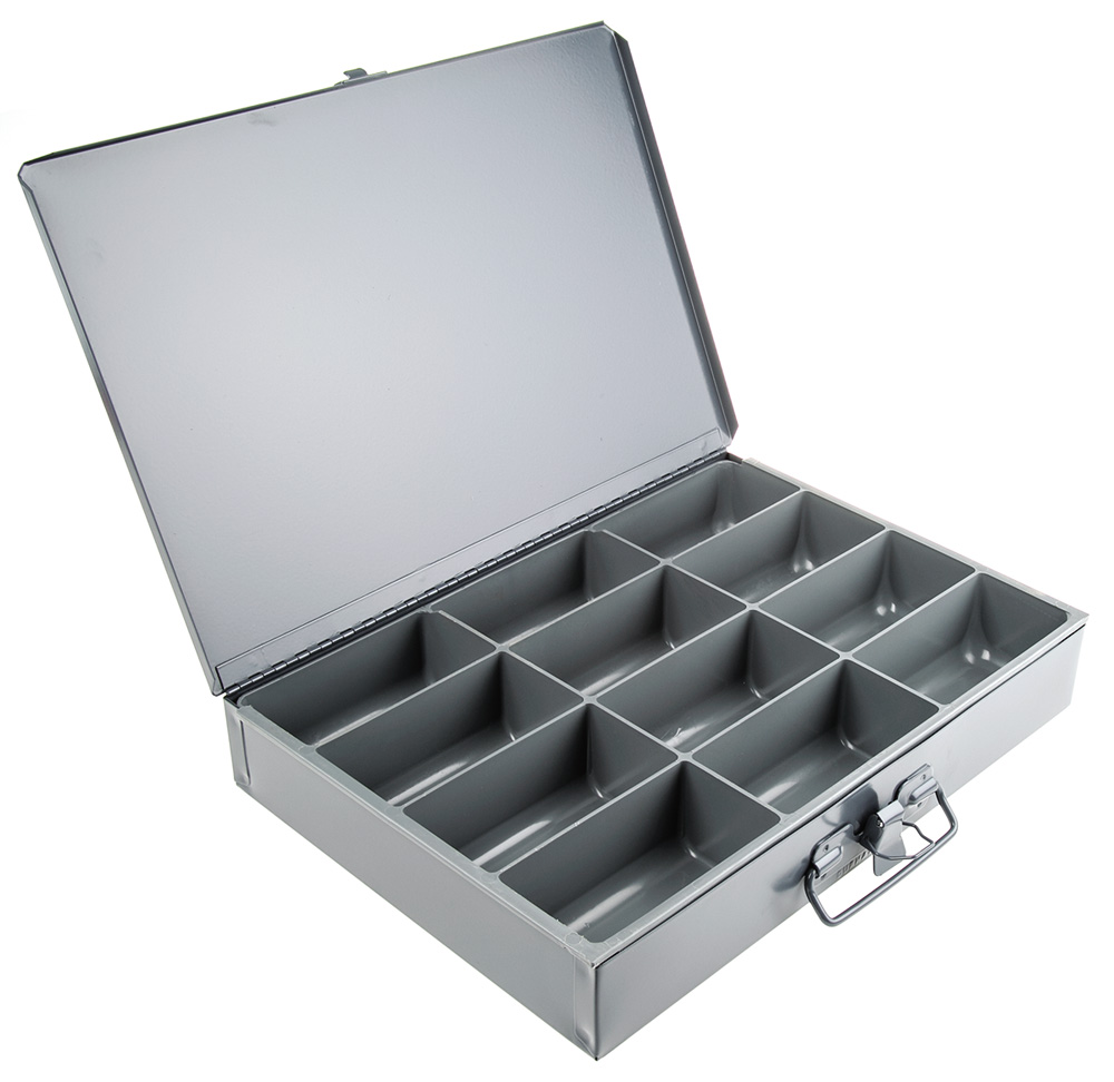 This is 12 Cell Grey Steel Compartment Box 50mm x 339mm x 234mm manufactured by Durham. The manufacturer part number is RS_303-4646. It has about 12 compartments . It has a decent grey colour. The product is made from highly stable and reliable steel. In addition, the height is 50mm. Furthermore, the product is 339mm wide. The product comes in 234mm depth.