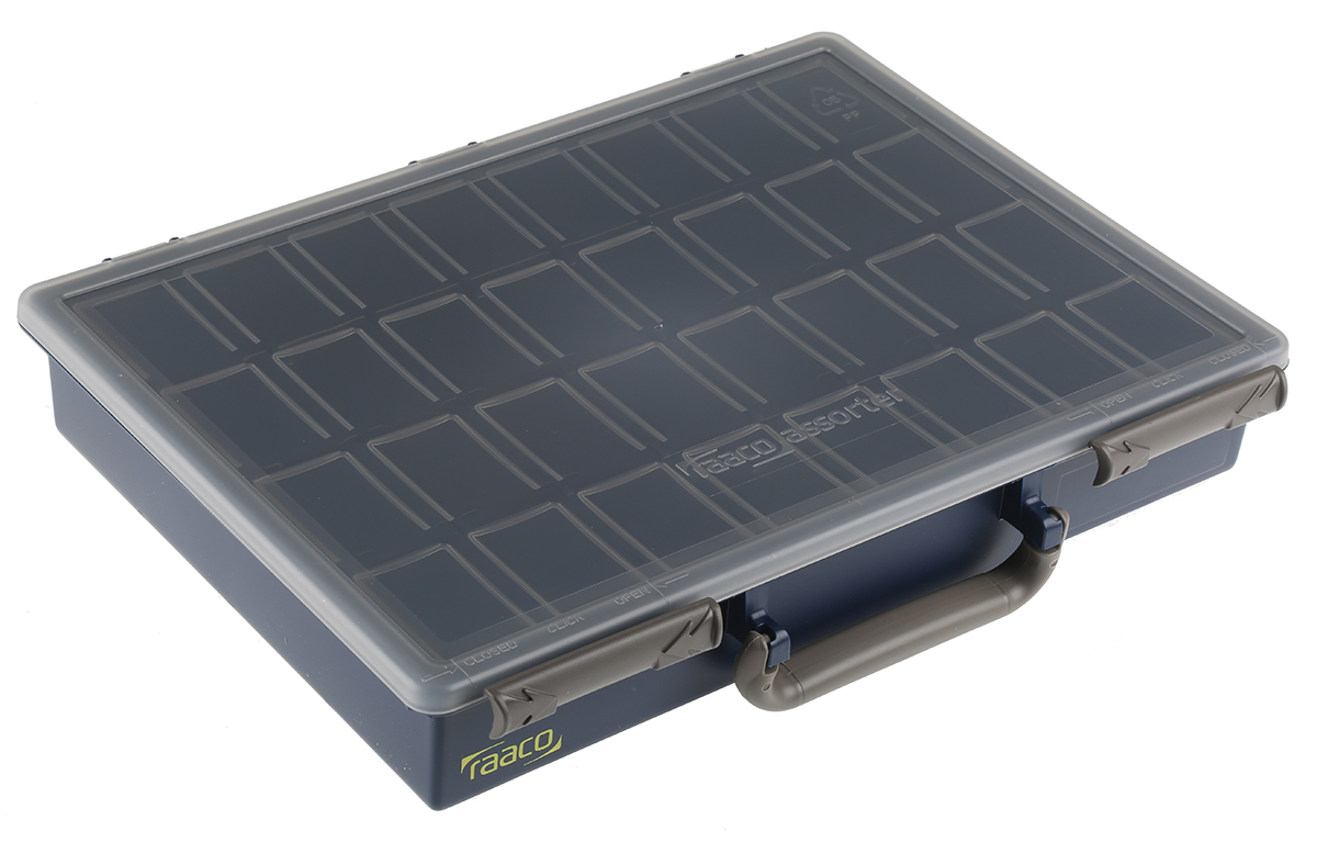 This is RS Pro 32 Cell Black Transparent PP Adjustable Compartment Box 57mm x 338mm x 261mm manufactured by Raaco. The manufacturer part number is 136204. It has about 32 compartments . It has a decent black, transparent colour. The product is made from highly stable and reliable pp. It includes a transparent lid yes . In addition, the height is 57mm. Furthermore, the product is 338mm wide. The product comes in 261mm depth. It has adjustable compartments yes .