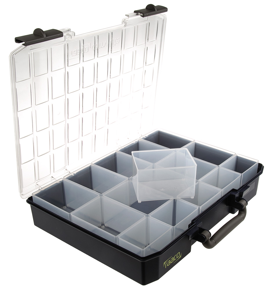This is 15 Cell Blue PC PP Adjustable Compartment Box 415mm x 330mm x 80mm manufactured by Raaco. The manufacturer part number is 138536. It has about 15 compartments . It has a decent blue colour. The product is made from highly stable and reliable pc, pp. It includes a transparent lid yes . In addition, the height is 415mm. Furthermore, the product is 330mm wide. The product comes in 80mm depth. It has adjustable compartments yes .