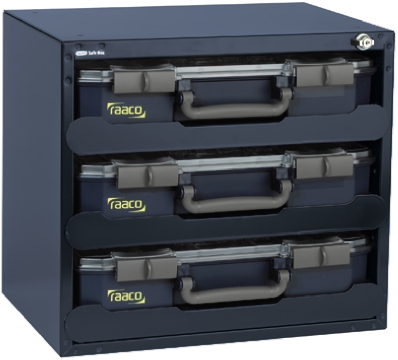 This is RS Pro Grey PC Compartment Box 403mm x 451mm x 330mm manufactured by Raaco. The manufacturer part number is 136389. It has a decent blue colour. The product is made from highly stable and reliable pc, pp, steel. It has a model number safebox 80x3. In addition, the height is 403mm. Furthermore, the product is 451mm wide. The product comes in 330mm depth. It includes a transparent lid yes .