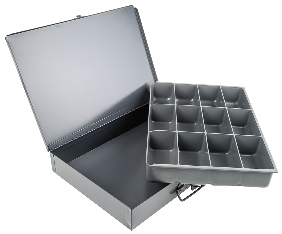 This is 12 Cell Grey Steel Compartment Box 50mm x 339mm x 234mm manufactured by Durham. The manufacturer part number is 303-4646. It has about 12 compartments . It has a decent grey colour. The product is made from highly stable and reliable steel. In addition, the height is 50mm. Furthermore, the product is 339mm wide. The product comes in 234mm depth.